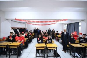 Ziyaret kapsamında Vali Ustaoğlu ile beraberindeki heyet, Türk bayraklarıyla donatılan okul binasında sınıfları gezeek öğrencilerle bir araya geldi. Öğrencilerle samimi sohbetler gerçekleştiren Vali Ustaoğlu, Türk bayrağının tarihî, millî ve manevi anlamına dikkat çekerek, bayrağın milletimizin ortak değeri ve bağımsızlığımızın en güçlü simgesi olduğunu vurguladı.